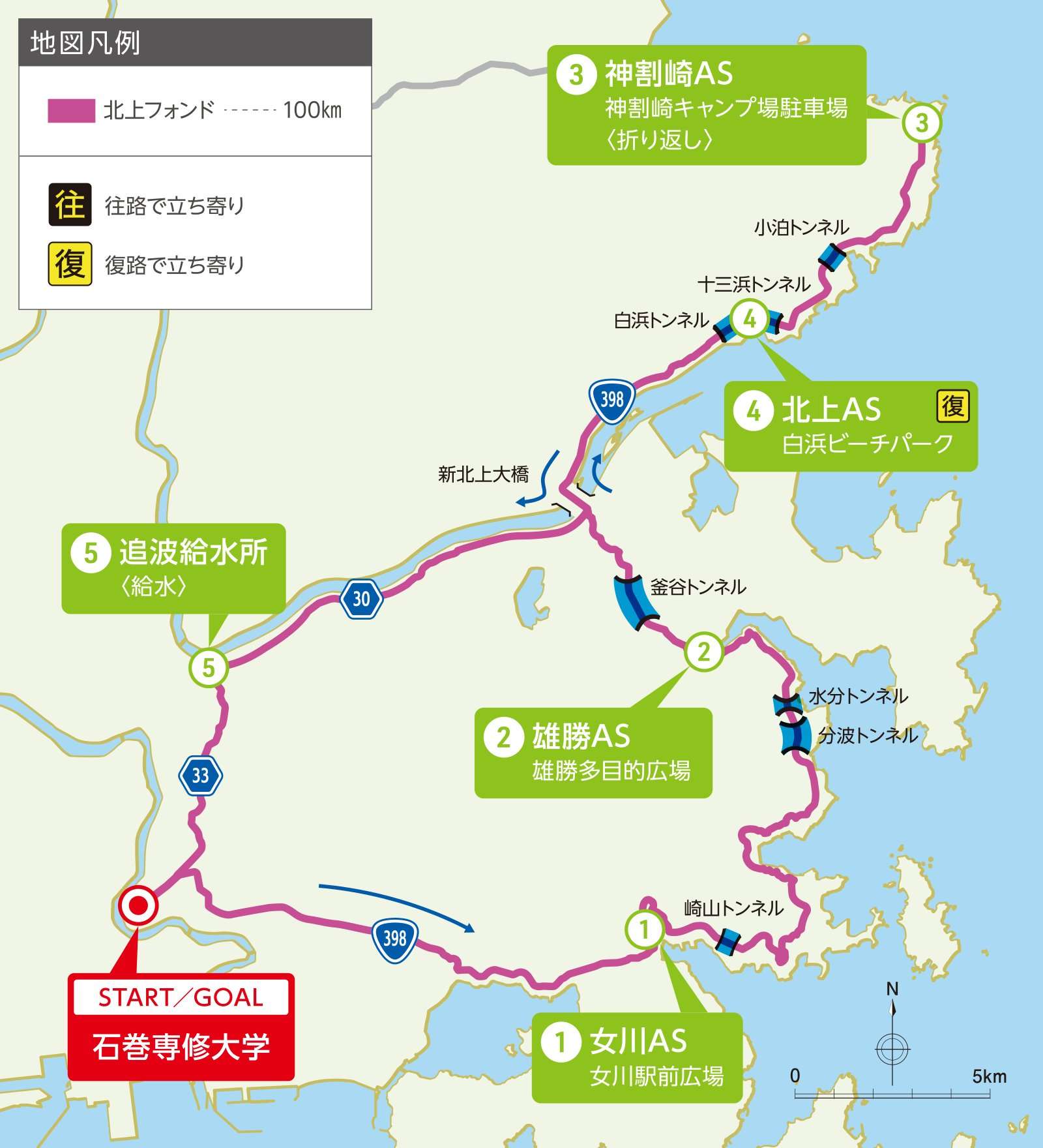 エイド・ポイント:エイドステーション(AS)4カ所 / 給水 1カ所