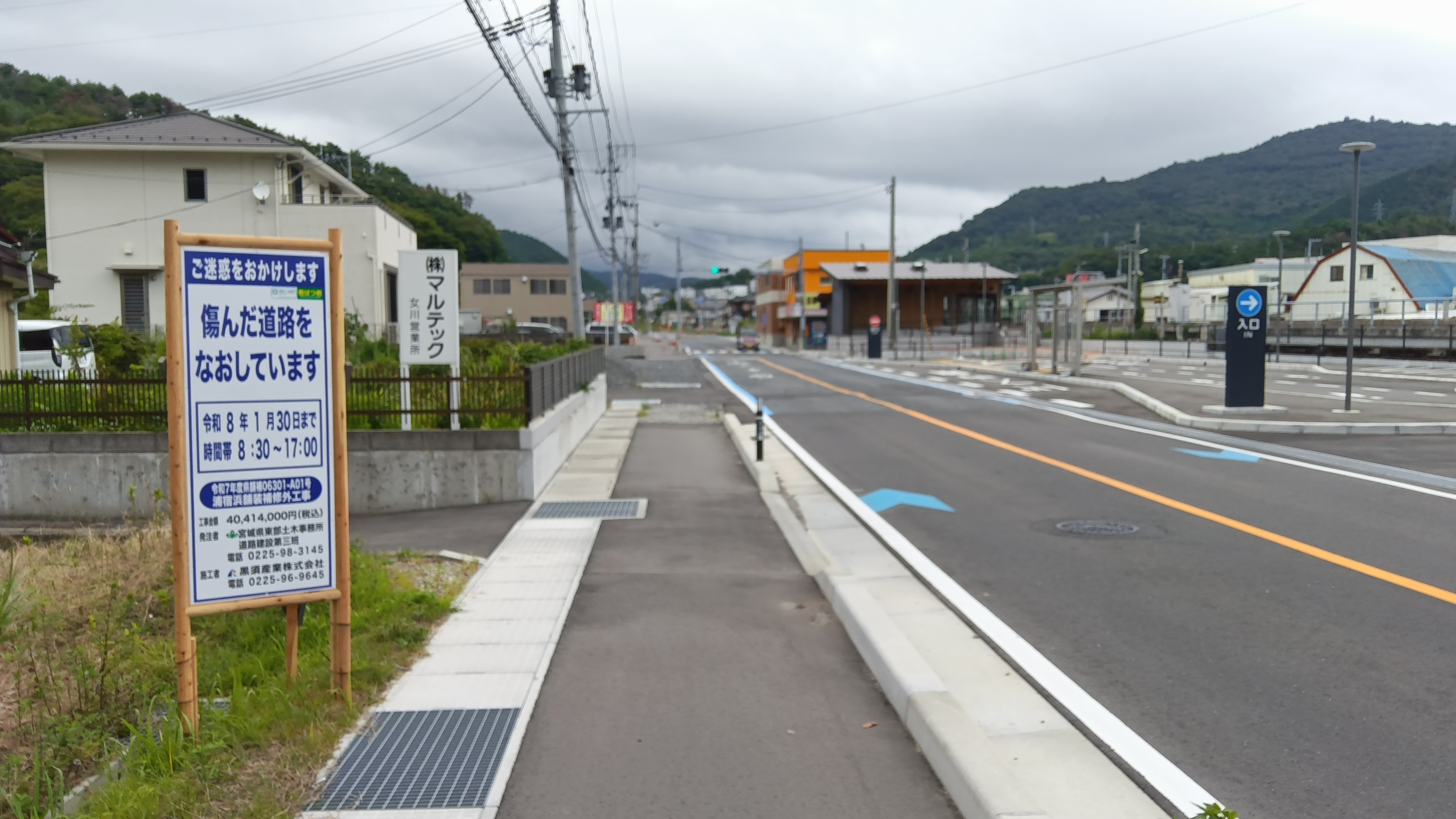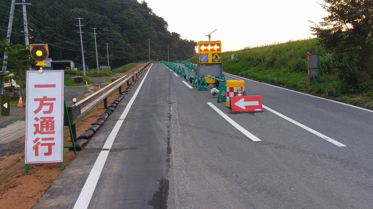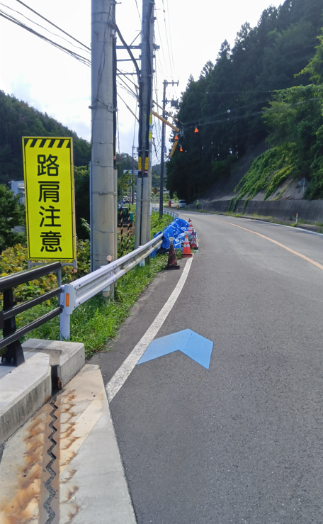 道路補修や災害のため、仮舗装や応急復旧中の区間が一部にあります。本来の道路幅より狭い場所もあり、周囲の車等に注意して走行してください。